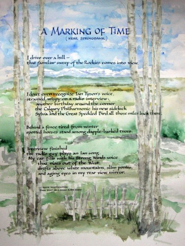 ALBERTA BOUND -excerpt from lyrics by Paul Brandt, lettering and boots by Renate. Another version of Alberta Bound is written in “Neuland” below.