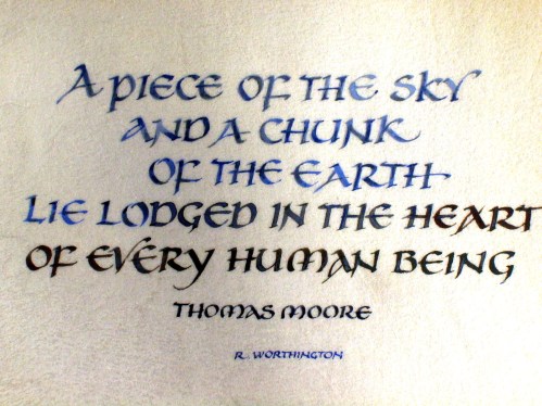 Two examples of Proverbs 25:11, lettered in Capitals, Versal “A”, and Italic. The lettering in the Saint John’s Bible was my inspiration for these pieces.