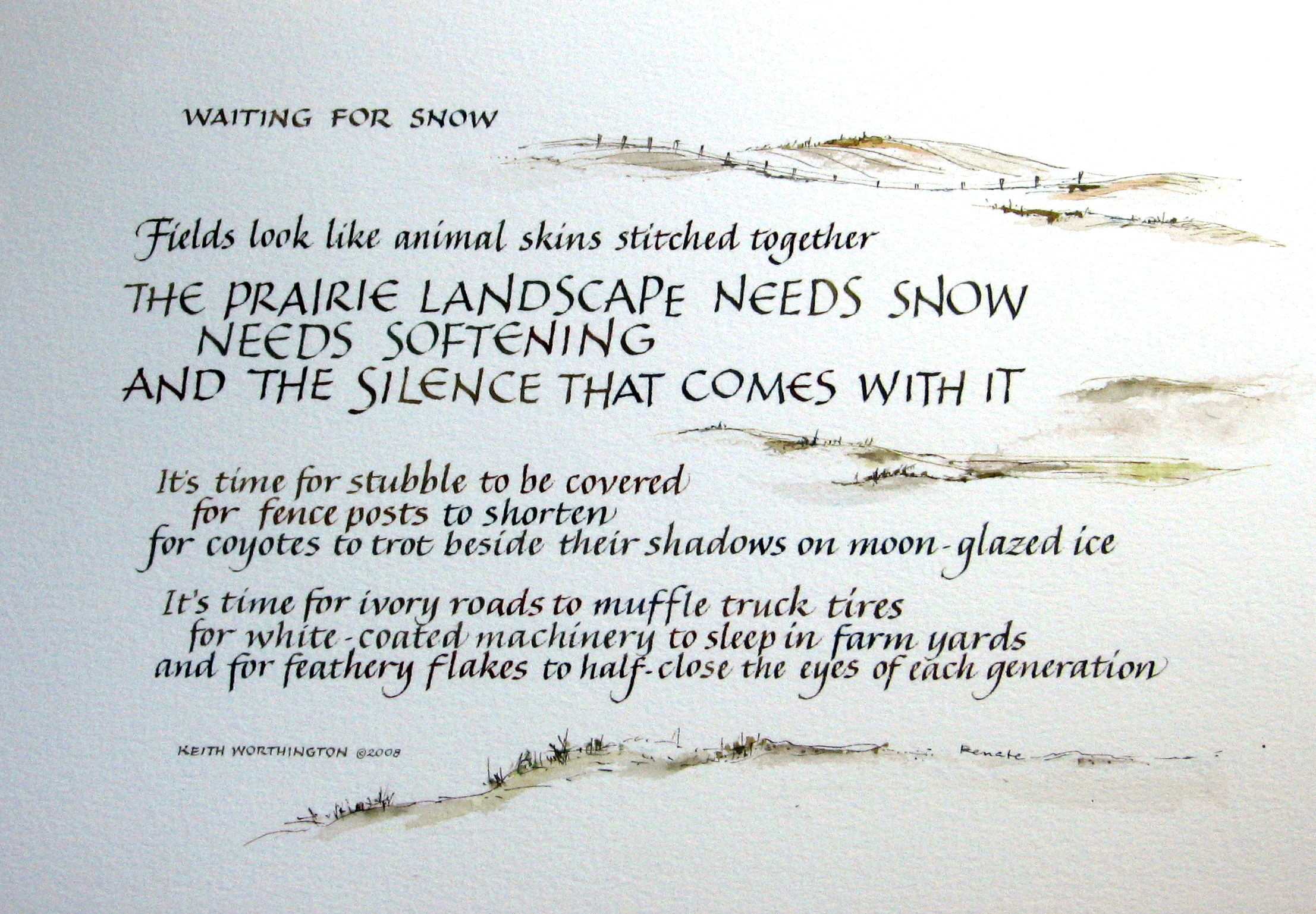WAITING FOR SNOW by Keith Worthington. Renate’s lettering is a mix of Italic letters and informal Capitals.